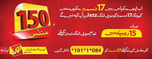 Mobilink Jazz is offering a very strange package for just one special day and allowing 150 free minutes to call your loved ones. On 17th December 2010, Mobilink Jazz is offering 150 on-net minutes in just Rs.15. Simply subscribe to the package and enjoy 150 free minutes on 17th of December 2010.
