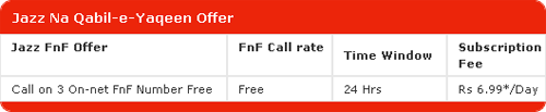 Mobilink started a unique package “Na Qabil-e-Yaqeen Offer” for the Jazz One customers to make unlimited call their 3 friends and family members for free 24 hours 7 days a week at just Rs.6.99/day + tax. This package became so popular in one night that Ufone had to launch the Ufone Full-Time Muft Offer and Telenor announced the Talkshawk Unlimited Free Calls package.