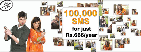 100,000 SMS can be send in a year to any network in Pakistan for just Rs.666+tax.