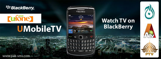 Ufone introduced a new unique feature for the first time in Pakistan giving it’s BlackBerry users to watch TV on their handsets. With UMobileTV now the customers can watch PTV, Aj TV and ATV on their BlackBerry handsets by downloading an application.